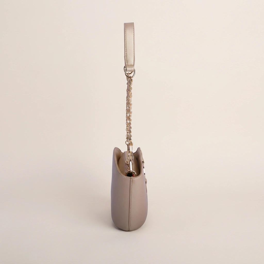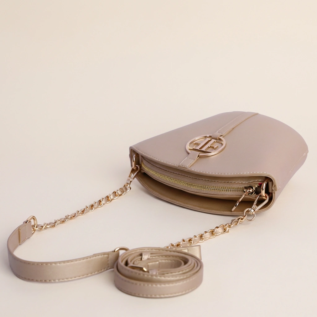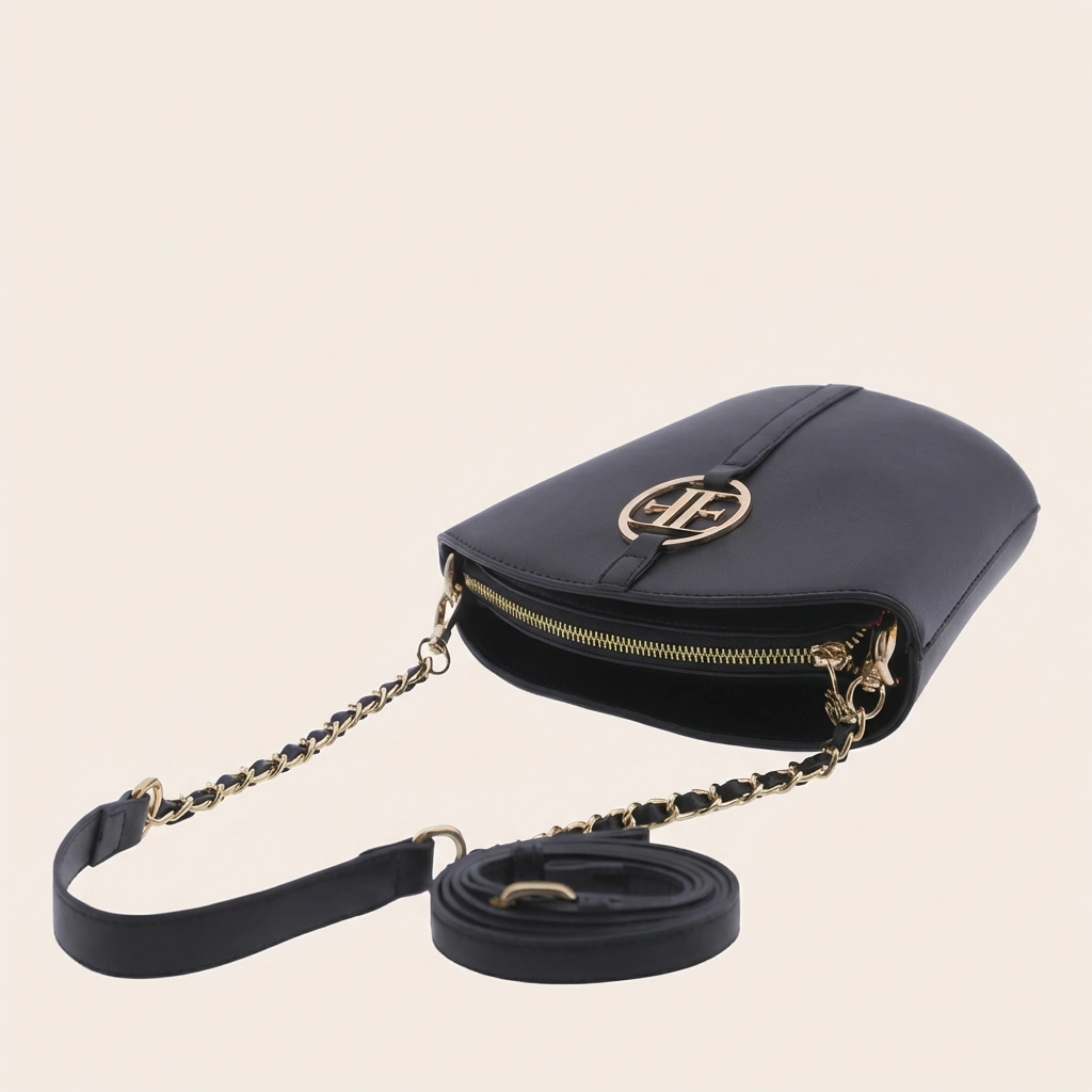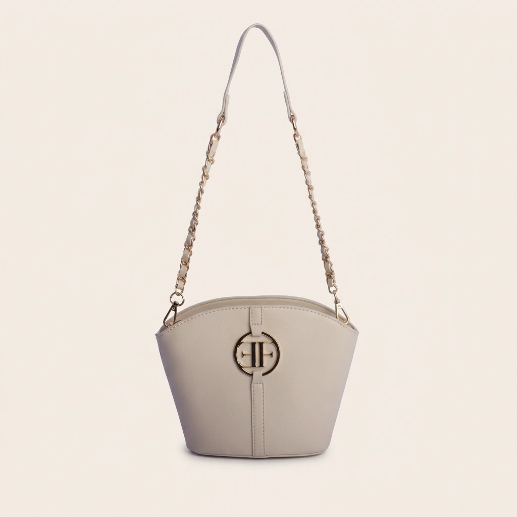 Elegant crossbody bag featuring a structured silhouette and a metal handle combined with faux leather. Designed for a modern and refined everyday look.