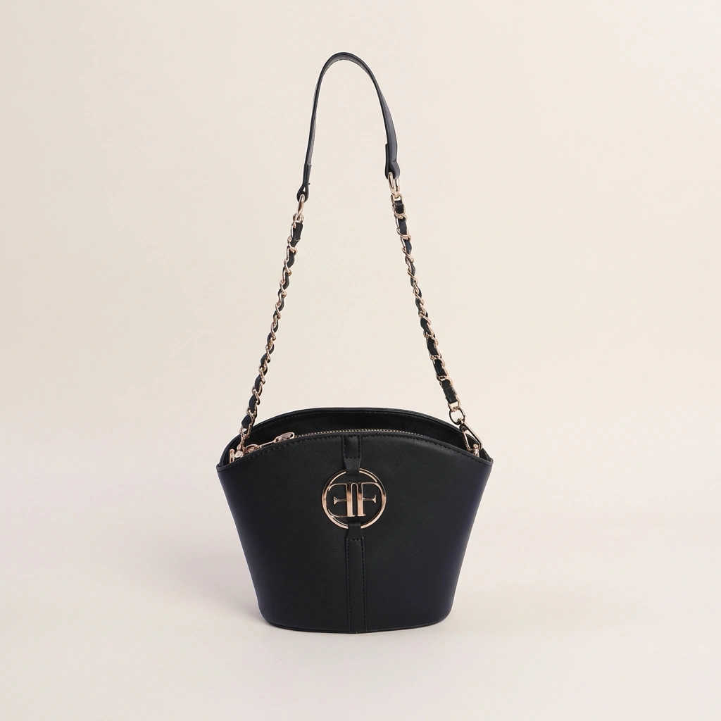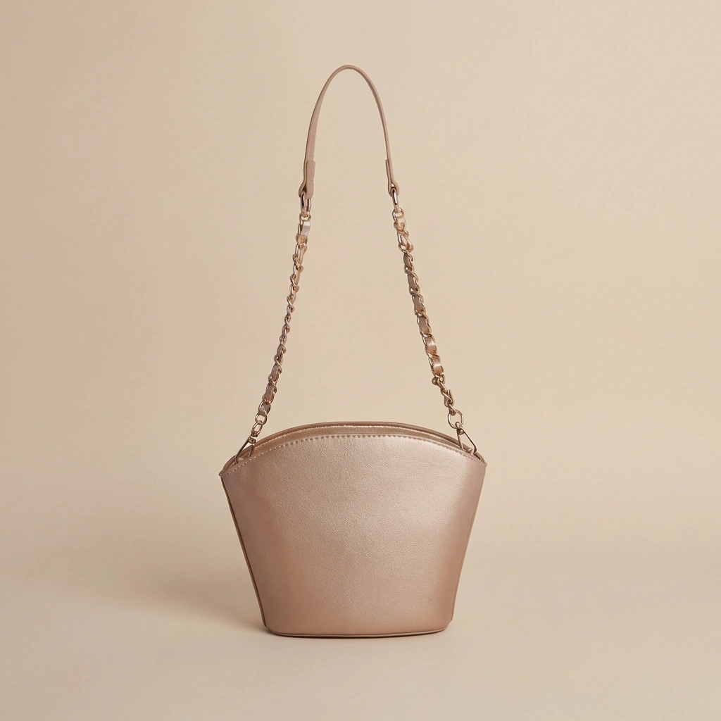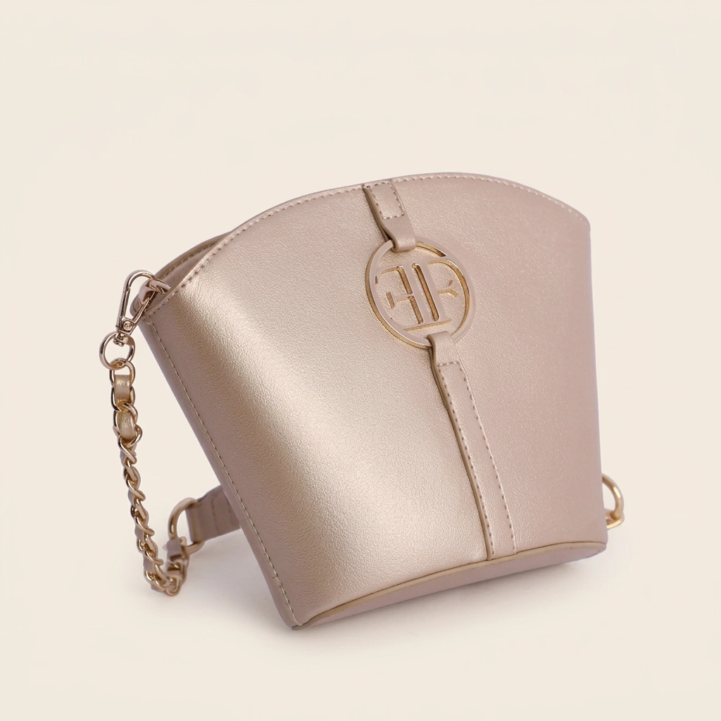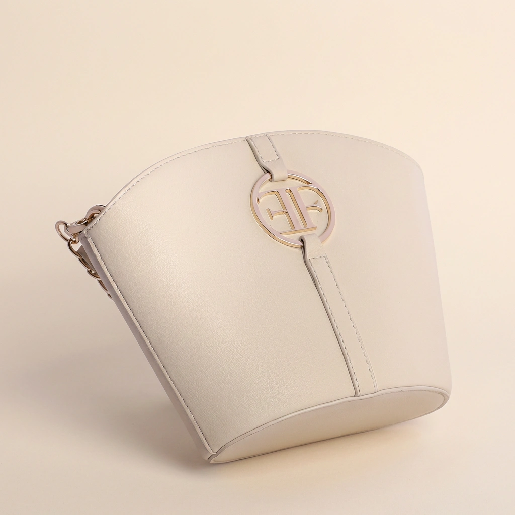 Elegant crossbody bag featuring a structured silhouette and a metal handle combined with faux leather. Designed for a modern and refined everyday look.
