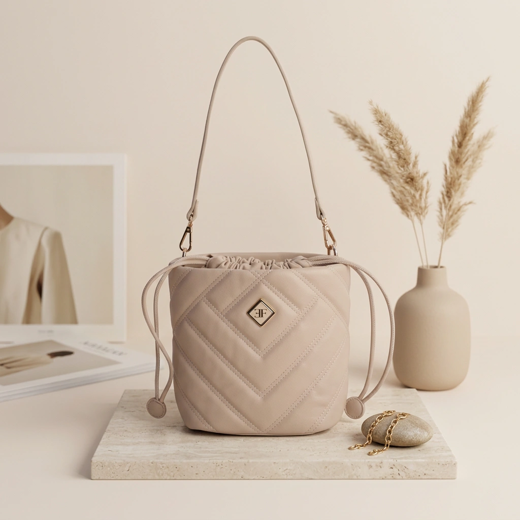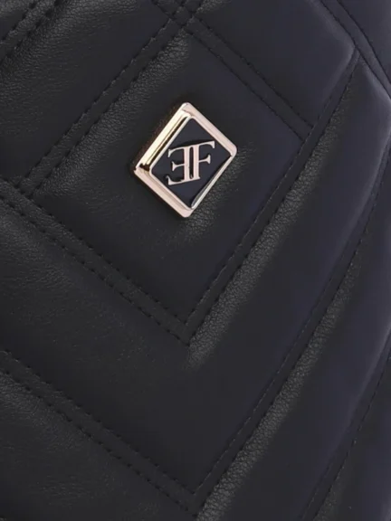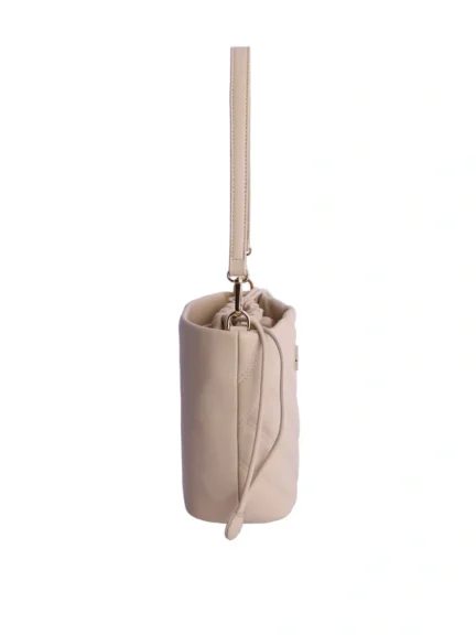 Elegant shoulder bag designed with a modern, structured silhouette. Crafted from high-quality faux leather, it features a refined golden logo on the front, adding a chic and feminine touch to your everyday look.